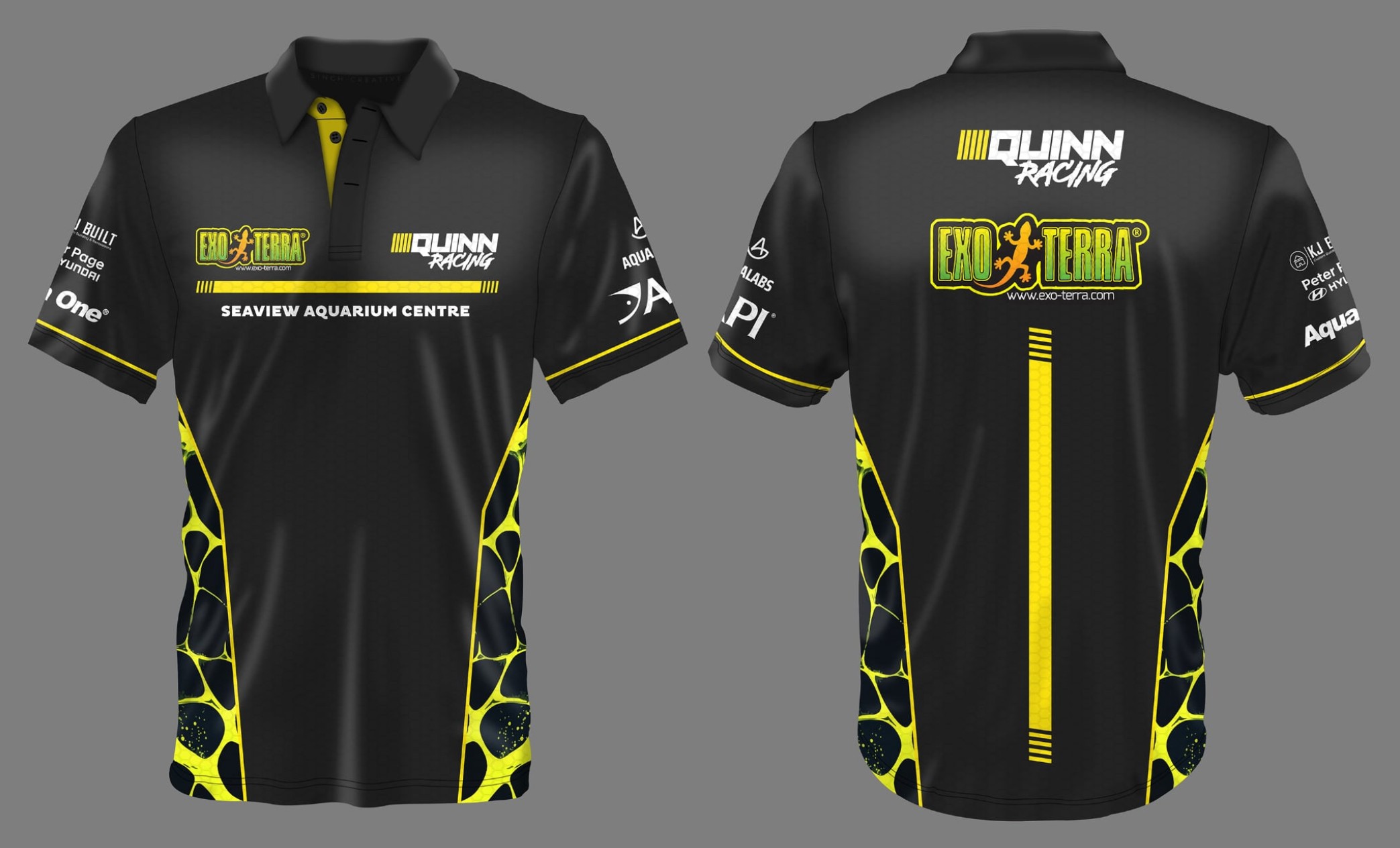 Finished in Quinn Racing’s signature charcoal and yellow colourway, this polo features official team and partner branding across the chest and sleeves, making it authentic teamwear worn throughout the 2026 season.